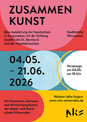 ZusammenKunst - Jahresausstellung der Kunstschule in der Stadtkirche St. Bernhard vom 4. Mai bis 21. Juni 2026